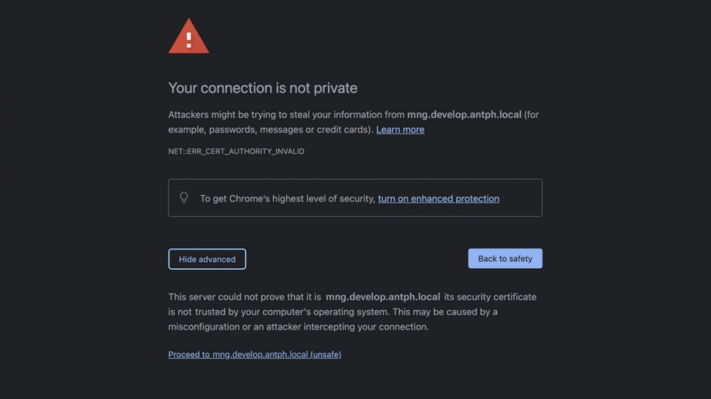 O’rtadagi odam” (man-in-the-middle) turidagi hujum vaqtida brouzer oynasi taxminan shunday ko’rinadi. Agar foydalanuvchi ogohlantirishlarga e’tibor bermasdan saytga kirishni davom ettirsa u tomonindan kiritilgan bank kartasi, login va parollar kabi ma’lumotlarni “o’rtadagi odam” qo’lga kiritishi mumkin.